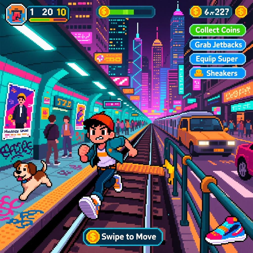 Dive into *Hong Kong Dash: Subway Escape*, a heart-pounding endless runner set in the neon-lit streets of Hong Kong! Dash through bustling subways, leap over obstacles, and slide under barriers while evading the grumpy Inspector and his dog. Collect coins, grab jetpacks, and equip super sneakers to boost your speed and score. Unlock quirky characters and stylish hoverboards to customize your escape. With intuitive swipe controls and daily challenges, every run is a fresh adrenaline rush! **Play now for free**—no downloads needed, just click and dash to claim your high score!